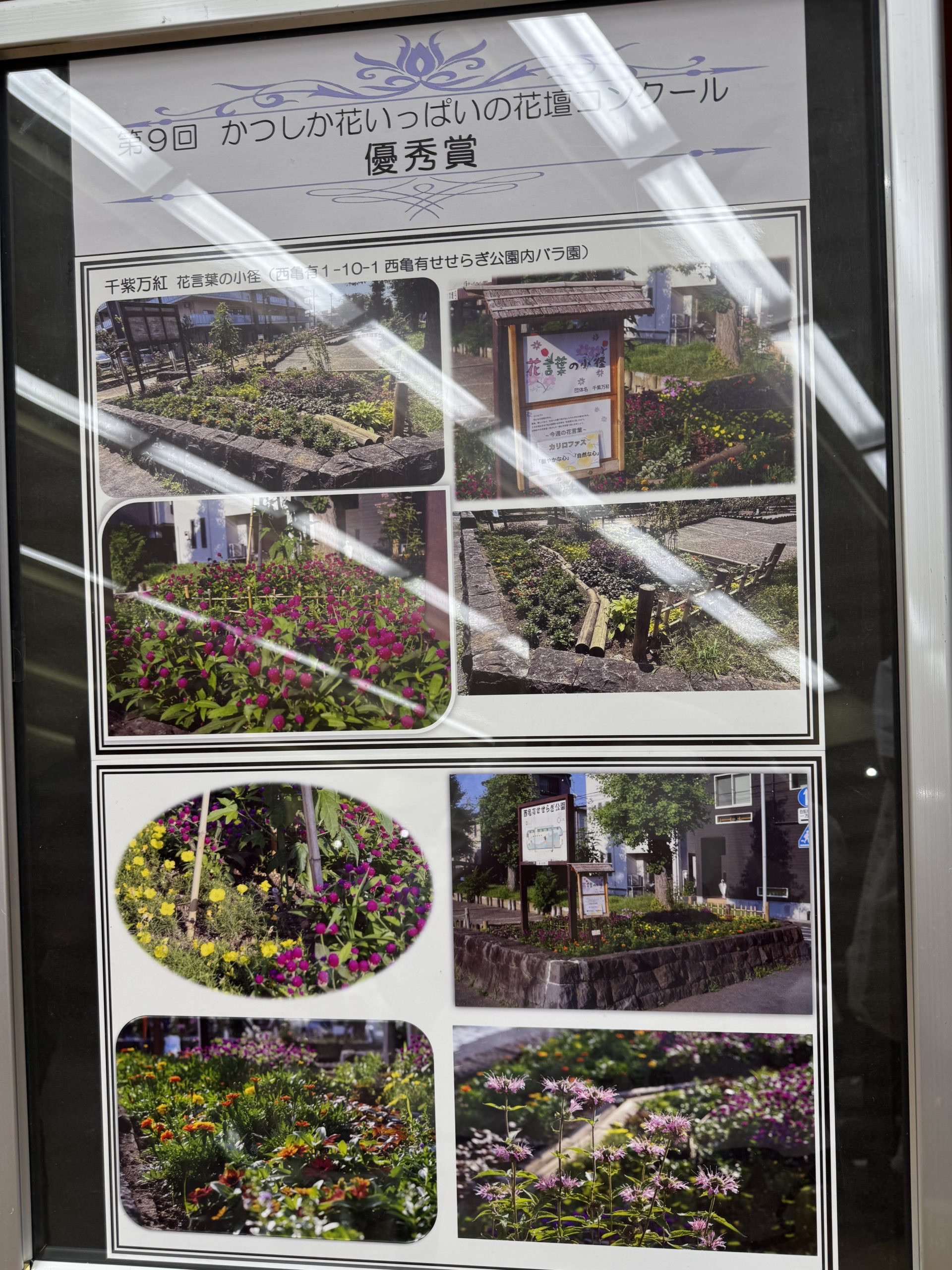 第9回かつしか花いっぱいの花壇コンクールで優秀賞を頂きました。初めて応募しての快挙。