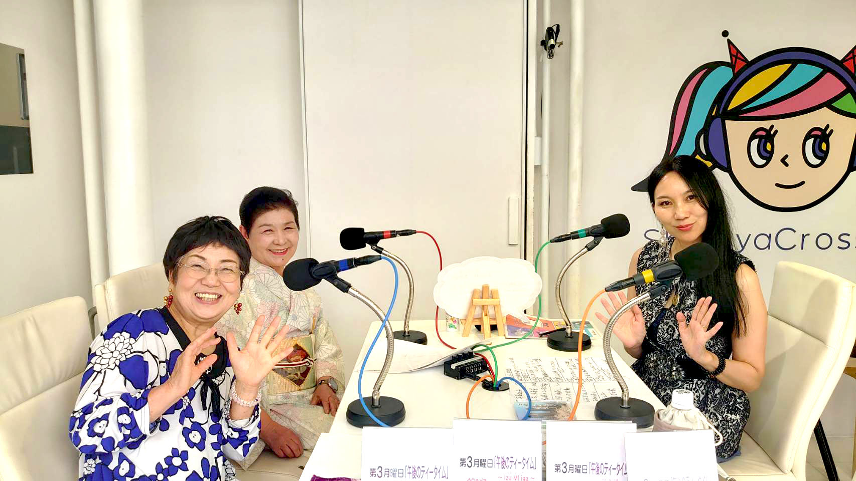 渋谷クロスFM生放送に出演。歌手のきたはらいずみさん、モンゴル楽器奏者ミーガさんと共に。