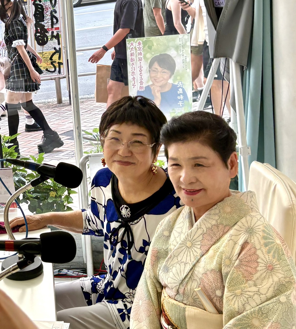 和子さんの『こども音頭でドドンガドン』藍の『大江戸ふるさと葛飾音頭』がながれ、ガラス張りのスタジオに居る私達に外国からの旅行者の皆様が手を振って下さいました。私は、友人からのリクエストで、まだレコーディングしていない大切な歌、『遠い記憶の中で』を歌いましたが、心筋梗塞で入院、退院したばかりと初めて歌ったので、声が思うように出せませんでした。
