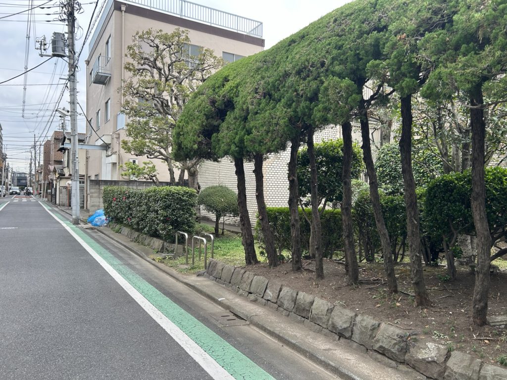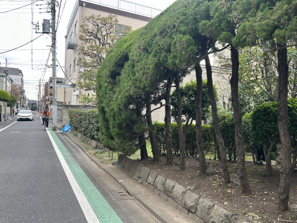 ・カイズカイブキの一部が歩道にはみ出ていて