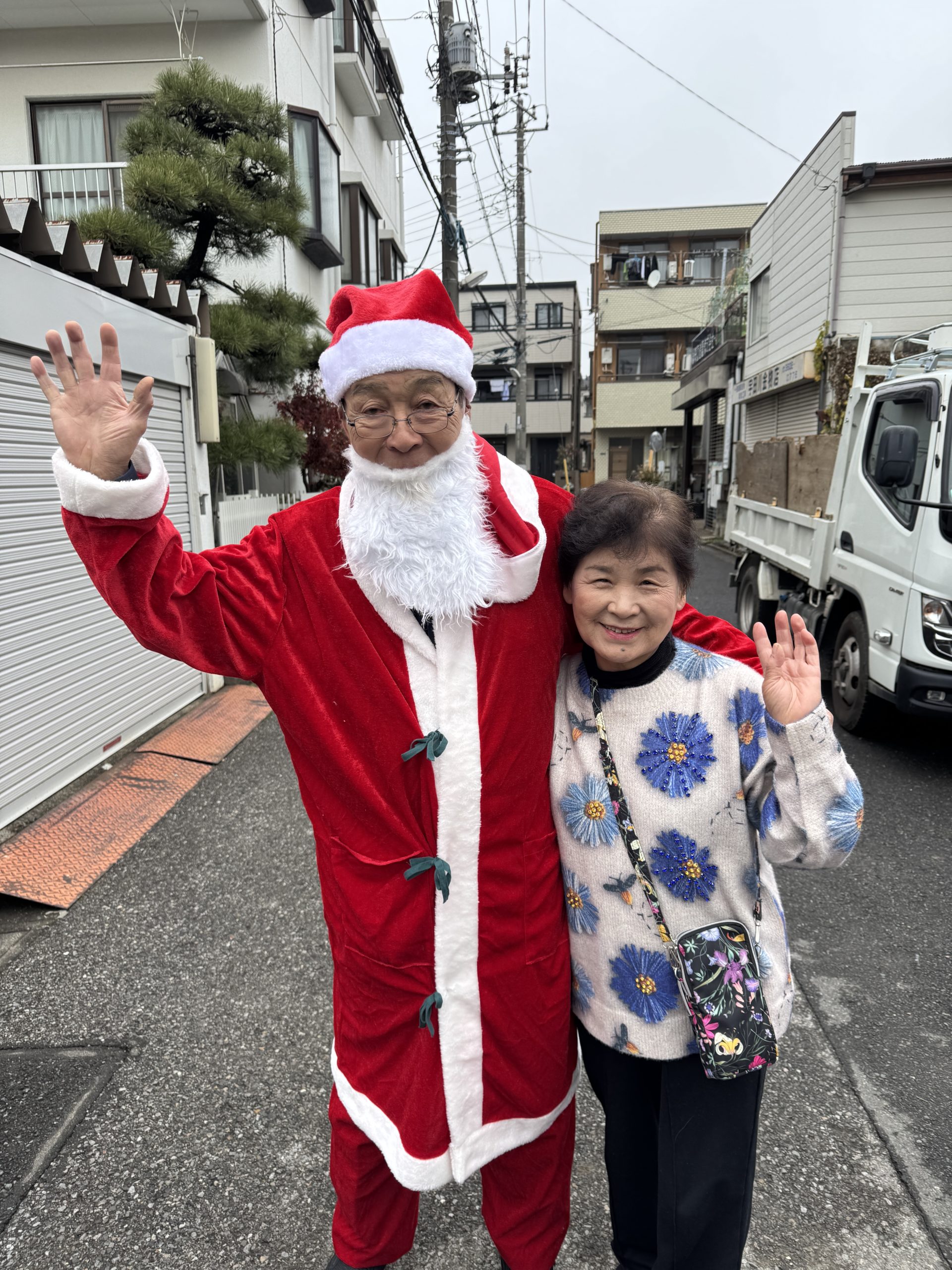 サンタさんを連れて孫二人にクリスマスプレゼントを持って行きました。家族全員インフルエンザにかかり会えませんでしたが、ラインでプレゼントを喜んでいる映像が届きました。